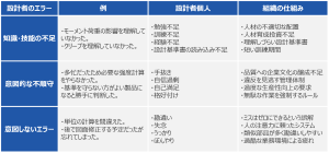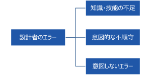 設計者のエラーには、知識・技能の不足、意図的な不順守、意図しないエラーがあります。それぞれのエラーが起きる原因について、設計者個人の視点と組織の仕組みの視点から考えてみます。