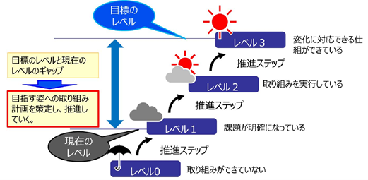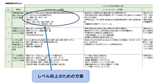 ①現状把握:自社の現状の立ち位置を把握するために各項目の現状レベルを確認