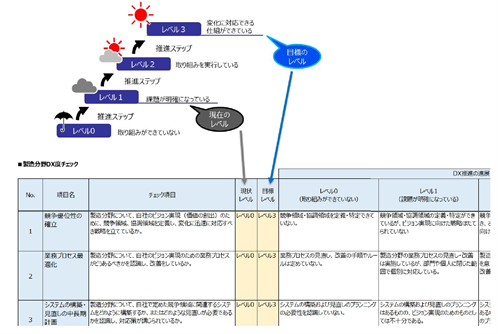 図4 製造分野の DX 進展レベルを現状と目標で確認するためのシート ※3