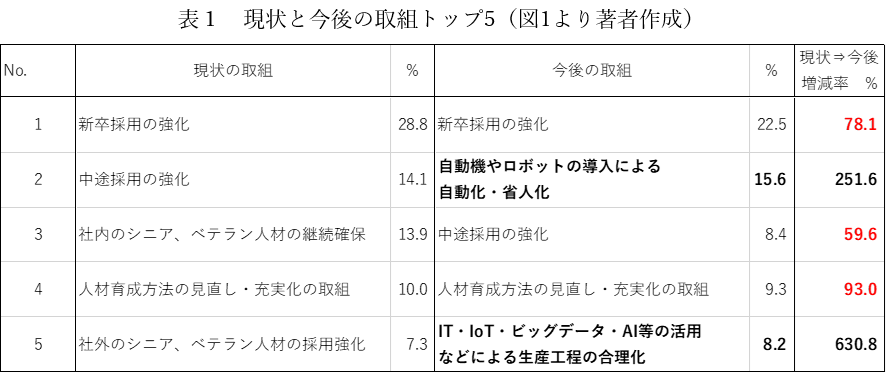 ここからわかることは、思うように人材を確保ができて自動化や合理化に取り組めている企業は一握りであり、多くの企業はその前段階である人材確保に苦戦しているという状況です。