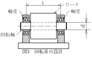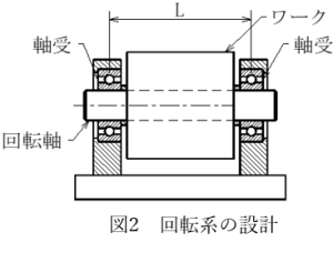 図2に示すように両端を軸受で保持し、ワークを受ける軸を設計します。