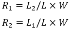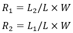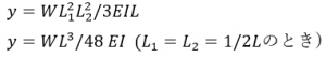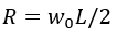 このとき両端の支持部に発生する反力R(=R1=R2)は次の式で与えられます。