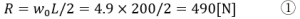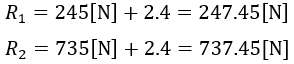 よって正確には、軸受に発生する反力Rallは①②を足し合わせて492.45Nとなります。