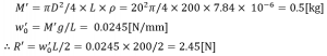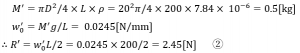 軸質量M’から軸質量により発生する等分布荷重W’0、さらには反力R’を求めます。