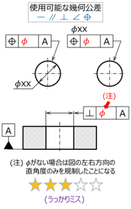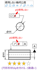 Φが付くことはないため、前述の同軸度、同心度と同様、別の解釈をされる危険性は少ないと思われるが、作法として気をつけたい。