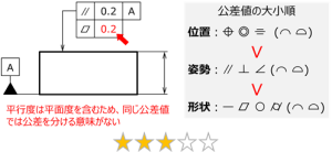 この間違いは滅多にないが、同じ姿勢偏差の直角度にも当てはまるので注意する。