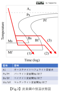 これらを図示したものが「恒温状態図」【Fig.2】「連続変態曲線」【Fig.3】である。