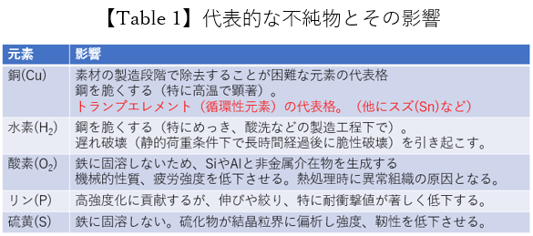 トランプエレメントと呼ばれる元素であり、かつ少量の混入で脆くなる。