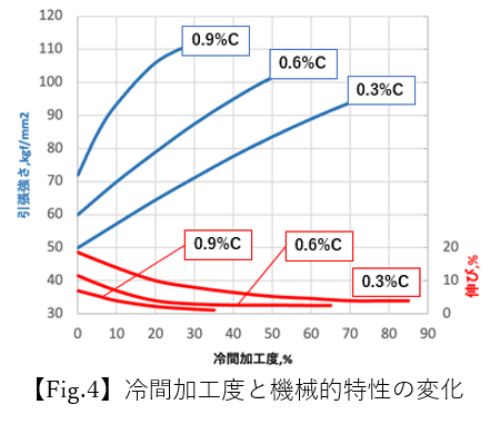 炭素量が多いほど、少ない加工度でも強度の上がり方が大きい【Fig.4】。