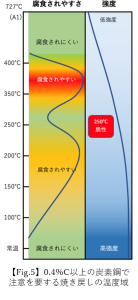 焼き戻しの温度は、低い炭素量の鋼の場合は、要求特性に応じて温度を決めれば良いが、