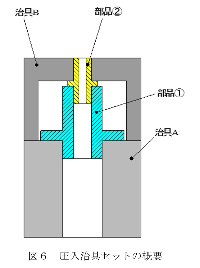 つまり、治具A及び治具Bで部品①及び部品②の圧入時の寸法精度を管理しています。