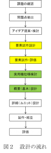 前回、図1に示す圧入機の設計について圧入機の要素試作設計~要素試作・評価(図の黄色の部分)を行いました。今回は、圧入機の実用機仕様検討~概要(基本)(設計)(図2の緑の部分)までの流れについて説明します。
