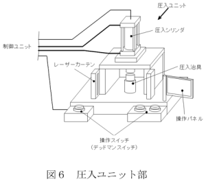条件(6)については、圧入ユニット部、制御ユニット部を構成する要素のほとんどをユニット化された市販品を組み合わせることで装置を構成しています。このため、これらが故障しても代替品が容易に入手可能であり、ユニット交換だけで修理が可能であるので条件(6)を満たします。