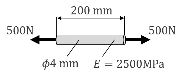 図2のような丸棒に引張荷重が与えられた場合について、実際に計算してみましょう。