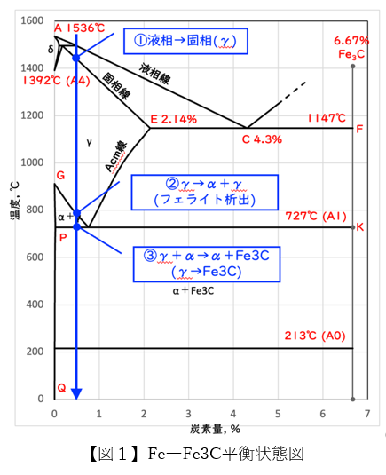 基本となるFe-Fe3C系平衡状態図でもその変化を読み解くことができる。