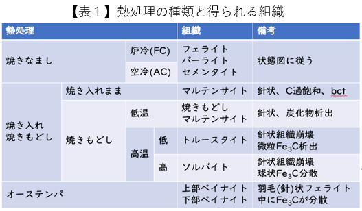これらの目的によって熱処理する温度、時間も変わる(表3)。
