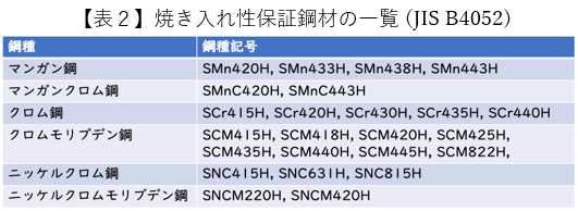 規定されており(表2)、鋼種記号の末尾に「H」がつく。