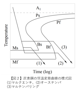 その後空冷することで、水冷よりも遅い速度で変態を生じさせる処理である(図2の(1))。
