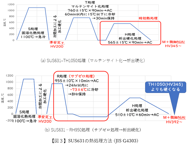 析出硬化型ステンレスSUS631(17Ni-7Cr-1Al,17-7PH)は、