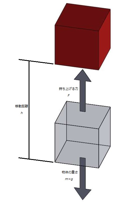 物体をある高さ【h】まで垂直方向に持ち上げるときの仕事【W】です。