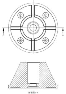 断面図とは、部品・組立図面の任意の位置で仮想的に切断し、その切断面及び内部形状を図面上に