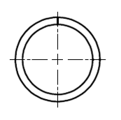 ばねの軸方向から見た図は、外径と内径を実線で描きます。端部の巻き方向(右巻きか左巻きか)を示す場合は、端面図に矢印などを追記します。