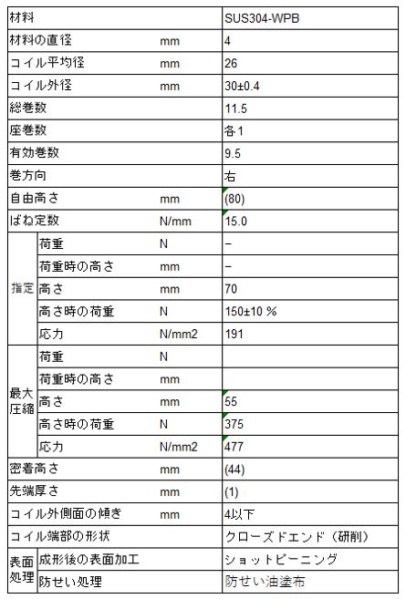 検査要件: ばねの検査方法(荷重試験、寸法検査など)や合否判定基準について、別途仕様書で詳細を定める場合があります。図面には、その仕様書への参照を記載することもあります。