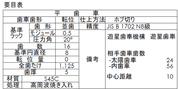 公差の指定: 必要に応じて、歯車の寸法公差、歯形公差、精度等級を併記します。