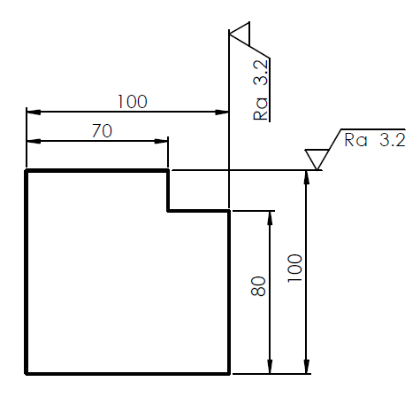 最も一般的に使用される記号で、基本記号の上に算術平均粗さ Ra値を記入します。