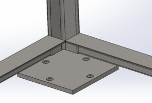 架台上部の板部品に、重量のある装置を固定するねじ穴をあけて溶接する。
