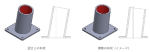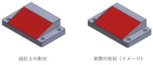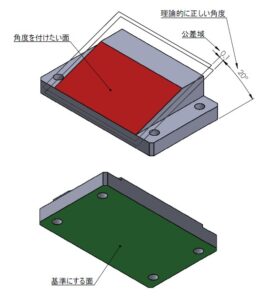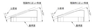 平行や直角ではない角度を付けた形状を設計した場合、設計値通りの正確な角度に加工することは難しく、ある程度ズレた角度が付いてしまいます。
