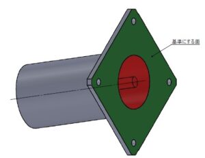 基準となる面や線などの形状からデータムを引き出し線で指示をします。公差記入枠に平面度の幾何公差記号と公差域の数値、データム記号を記入して、規制したい面や寸法線、面からの引き出し線などで指示をします。