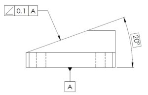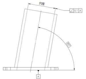 部品のある面又は直線(基準にする面)に対する直角以外の角度が、どの程度正確かを表す姿勢偏差の幾何公差です。