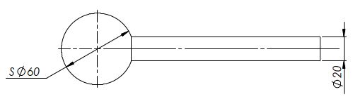対象形状の断面が球形である場合、寸法数値の前に寸法数値と同じ大きさで、球の直径記号SΦを付けます。
